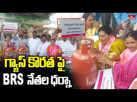 గ్యాస్ కొరత పై BRS నేతల ధర్నా | BRS Leaders Dharna Over Gas Shortage | hmtv