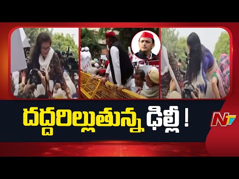 Drama at INDIA bloc protest, Akhilesh jumps Delhi Police barricade, Rahul detained | NTV Telugu