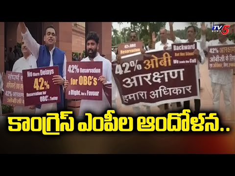 కాంగ్రెస్ ఎంపీల ఆందోళన..| Congress MPs protest in Parliament premises | bc reservation |Tv5